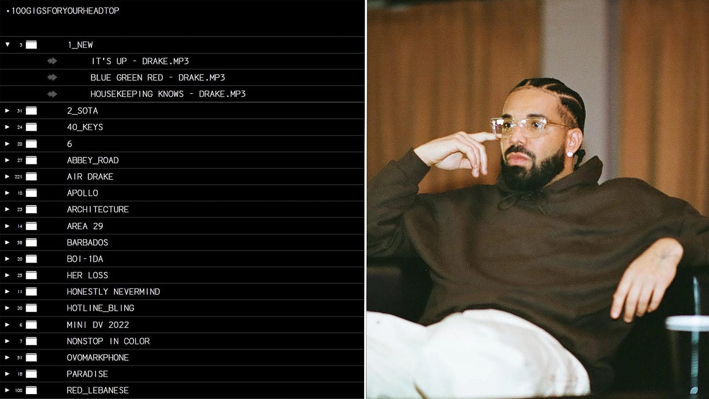 Take Drake’s infamous 100 Gigs: a digital archive of unreleased tracks, demos, and hidden gems surfacing like musical contraband in the internet’s underground. It wasn’t for everyone. That was the point.